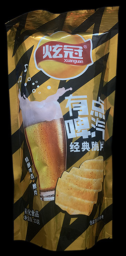 The marketing team and package designers of this treat managed to convince me to buy these, but the makers kind of failed to give me even the most basic of crisp (chip). I would have been super happy if the flavour was obviously beer, but I wouldn’t have been totally disappointed if they designed a flavour that might go well with beer. Sweet and spicy to me seems like they might have missed both marks.