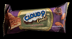 I think this is the second or third Cloud 9 bar that I’ve tried and I’m starting to notice a pattern. Maybe I’m not getting the best Cloud 9 bar variety out there, as I’ve seen at least 8 different variations on store shelves (in the Philippines). These bars seem to offer something, like in this case “Almond Fudge”, but in small print they list off a bunch of other ingredients, peanuts, rice crisps, caramel and nougat. So what you’re expecting is a nice almond fudge candy bar, but what you get is a mishmash of other ingredients.
