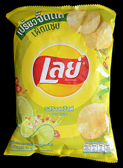 At first I thought the concept of a sour potato chip was a little weird. When I first hear “sour” on a treat, my first thought goes to something like Sour Patch Kids or Tear Jerkers. Most of these sour treats tend to go a little more towards the fruit flavours as opposed to the savoury. While I’ve had some luck with sweet potato chips, it can be a little weird. After looking at the package and thinking about it for a little while, I realized that there is a fruit that works really well with savoury treats, and that’s lemon or lime. Not only do these citrus fruits work with savoury foods, they also give a nice balance to spicy foods too.