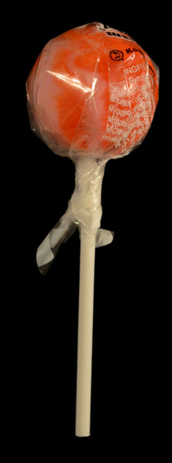 I'm not really sure what the folks at Original Gourmet meant when they called this a "Mystery Flavour". Does it mean that this lollipop is a specific flavour, but they're not going to tell us, so we have to guess? Or is this a random collection of flavours that they've combined, and they had no particular flavour in mind? If they had a flavour in mind, I feel like they're issuing me a challenge, and this makes me feel pressured, as if they're saying that if I don't guess the flavour, I'm a bad Candy Critic. If they don't have a flavour in mind, then I start to think that the folks at Original Gourmet are kind of lazy, and they're just making random flavour and not committing to giving the flavour a name. It's really a lose/lose situation.
