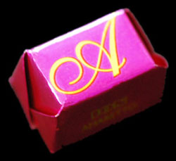 I'm thinking that using the letter “A” on its own is a way of trying to denote class, if it's the name or the first letter in amaretto. The thing is this treat doesn't really seem that classy. Sure, it's a lot classier than say a bag of pop rocks or even a Kit Kat bar, but it's not hand made or made of particularly fine ingredients. This treat is really what I like to call grocery store classy. It's the kind of treat that you can find in most grocery stores but it's a little more expensive than the generic grocery store candies you find in the racks near the cashier.