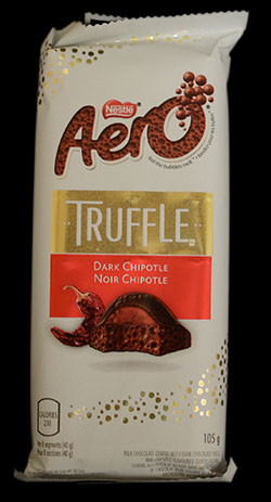 I'm going to be completely honest with you, the reason I bought this bar was because it was on sale. There are several of these truffle Aero bars available, however this one seems to be selling the least, and so they're on sale. I can kind of understand why this is. Most people don't like/know about spicy chocolate, many people think that spicy chocolate is a gimmick with no basis in history. It's interesting because in fact the ancient Myans used to mix cocoa with spicy dried peppers all the time in a drink. In fact the spicy flavour of peppers goes very well with cocoa. While the sweet aspect is a little weird with spicy, it's not horrible either. This brings me to why I bought this bar, it was on sale, and while I agree that spicy chocolate works, I'm still not a huge fan of spicy foods, and I worry that some of them might blow my socks off.