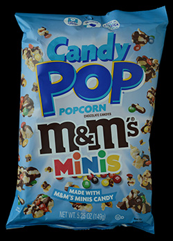 Snax Sational has an entire line of popcorn where they use various candy and cookie (as well as cereal) treats mixed into their popcorn. The unique thing about their treats is that they use the actual treat mixed into the popcorn, as opposed to flavouring the popcorn similarly to the treat. In other words, they would add pieces of Snickers bars into the their popcorn as opposed to just making a Snickers flavoured popcorn. I’ve tasted a few of these popcorn flavours with a mixed degree of success. The reason I say all of this is that this particular flavour should be the easiest, because people already add M&M’s to their popcorn so it’s kind of a no brainer, or so I thought.