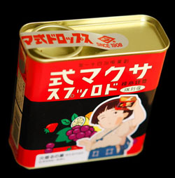 There's something really sad about this package. It's not the fact that it's a can or anything, in fact I think that makes this treat really cool. The thing that makes me sad about the package is the way that the kid on the front of the package seems to be sad about the idea that there is no more candy in his container of "Chinese Candy Drops". Should he be sad?