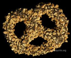 This is like a three-tiered snack. You start with a pretzel, a fun snack on its own. Then you add chocolate, even better and also a fine snack on its own. Finally, you add peanuts, it's a great in this combination, and also a fine snack on its own. I'm thinking the idea behind this treat involved three people in a room enjoying three different snacks and some kind of collision happened. But I guess that would be ripping off the classic "You got peanut butter in my chocolate. You got chocolate in my peanut butter” campaign from Reese’s Peanut Butter Cups. Either way this snack is great.