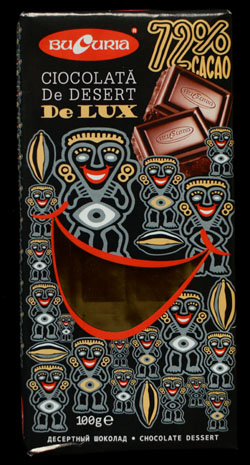 This bar is fine, it's got a nice fruity/bitter flavour that you look for in a dark chocolate bar. The texture when melting in my mouth could have been a little smoother. It's not a bar I would ever seek out (except for the cool package) but I was happy enough to eat it.
