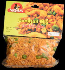 When you look at the package, and then look at the contents of this cocktail mix, you'll notice one thing in particular. The package shows whole cashews, long noodles and all kinds of nice ingredients. When you look at the bag of snacks, you'll notice broken noodles, some peanuts, and if you look really close you might find a piece or two of cashew. It basically seems like this bag of cocktail mix was put through a food processor. You could blame the flimsiness of the bag for the broken noodles, since they're rather fragile, but the cashews should probably be able to stay together. I'm guessing that the folks at NOAS probably don't use the highest quality ingredients, except for the photos on their packages.