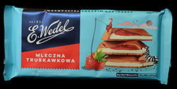 I don’t know how long the E. Wedel “Mleczna Truskowkowa” bar has been around since I’m not from Poland, but I feel like it’s been a while. While it feels old fashion in its design, it’s actually not that common a treat to find on store shelves. Simply taking nice milk chocolate and filling the bottom with cream, and then filling each square with a nice strawberry jam is nothing that impressive from a technological or trend perspective, but it creates a bar that really works. The cream on the bottom blends well with the milk chocolate and the strawberry, the strawberry jam is really thick and there is no doubt that when you bite into this bar that you’re eating something strawberry. The chocolate holds it all together both physically and conceptually.