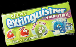 So far, I'd been able to handle all of the sours but I was worried, the difference between the watermelon and strawberry was pretty intense, so if the next candy was appropriately more intense, I might have to reach for an extinguishing berry. Fortunately thought the apple was not really much sourer than the strawberry. I say fortunately but really, I was kind of disappointed. I was so hoping that it would blow my socks off. Instead it was fairly sour and kind of cruddy for an apple flavour.