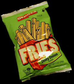 Most importantly these little treats are pretty tasty. First of all, I see lots of little bits of skin on each one of these Fries, which tells me that chances are they're not "made from" real potatoes but in fact are real potatoes. It's not that common to find potato snacks, other than potato chips, that are made with real full pieces of potato. The trend seems to be taking potato powder and forming it into some kind of potato snack. Not only are they made with real potato pieces, they're nice and crunchy too. For some reason I feel like they could have come out soggy, if made by a lesser snack company.
