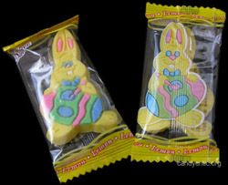 These have to be some of the best coloured gummies I've ever seen in my life, and seeing as a good 30% of my life has been in the pursuit of great gummies, that says a lot. The amount of detail in the design of this gummy is pretty impressive. It’s not just a blobby gummy that’s kind of shaped like a bunny. This is a full detailed image of a bunny that’s coloured in and full of amazing detail. It's as if the bunny is telling a little story about how much fun he had painting that pretty egg. Too bad I have to bite his head off to do this review.