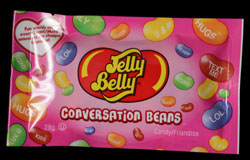 The point of this candy is simple. It’s kind of an homage or maybe a parody of conversation hearts made by Necco. As a novel version of this classic treat these are perfectly acceptable. Each bean had a different message on it, most of the messages were one word and all of the ones I found were positive. There wasn’t anything dirty or negative as a joke bean which was nice. In general, I found the idea of these beans to be a total success.