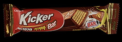 This bar suffers from what many of the other Kit Kat knockoffs suffer from, but there is one interesting thing about it. The first similarity is the name, or rather a name that sounds a bit like Kit Kat but not exactly, KicKer. Notice the second “k” is capitalized on the package. The package design itself is also similar to the Kit Kat bar, or at least a Kit Kat package from a particular era, this one looks to be a Kit Kat bar from the 80s to me.