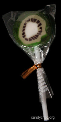 It's been a while since I've eaten a kiwi flavoured candy, and the last one tried tasted more like watermelon than kiwi. Because of that I'm not so surprised at how little this lollipop tastes like kiwi, however I am surprised at how much it tastes like sour apple. I'm surprised, and a little disappointed too. I’m disappointed because I would have liked to have finally tasted a kiwi flavoured lollipop, and I'm also not a big fan of most apple flavours either. It's strange, maybe I'll have to do another taste test myself, but I never thought of kiwis and apples having the same flavour. I'm not going to go off on this tangent too much because I've never thought of it before.