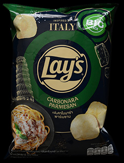 The fact that both of these flavours are largely missing is odd, because both of these flavours are very common as potato chip flavours. I thing I’ve seen just about every cured pork meat made into a potato chip flavour before. Pepper is so easy as a potato chip flavour as you can simply add the real thing. I’ll admit, of the 4 elements that make up a carbonara, taking out the pepper and cured pork is probably the two parts I’m most okay with. The problem is that I feel like you’re not really making a carbonara potato chip without them.