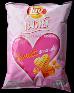 It's not often that a major brand comes out with a snack that's totally foreign to me. It helps that this particular treat is from a country that I'm not as familiar with the types of snacks that they have, Thailand. I know I bit about Thai snacks, but I don't know if these sweet, heart shaped crunchy snacks are something that's been around Thailand for a while, or if it's something brand new. All I can say is that I've never tasted anything like these before.