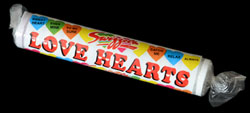 I'm having a hard time deciding if I like these Love Hearts or not. They're not particularly creative, and the flavors are almost impossible to identify. Creatively they're candy hearts, sort of. They're not really heart shaped, but are in fact candy disks with hearts and messages etched into them. They look pretty cheap, but that's not all that seems cheap about them. The colours are really pale, sometimes you can't distinguish them from each other. The flavor is also cheap, they're impossible to guess what flavor each colour is supposed to be. The slightly tart flavor outweighs the fruity flavor by a long shot. You can pick out a bit of fruity flavour, but you really have to dig deep.