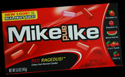In the past I've asked the question "what flavour is red?" It seems to be a popular trend with candy companies to make red themed treats, I'm assuming because most people's favorite flavours tend to be the red ones. The good thing about Mike and Ike's Red Rageous is they don't just tell you that it's red flavoured, instead they give you a list of the many red flavours that are in your package of Mike and Ikes. Your options are strawberry, raspberry, watermelon, fruit punch, and cherry.