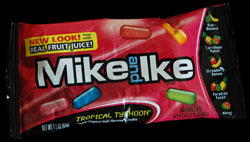 I think the name of this treat should have been "Tropical Confusion" instead of "Tropical Typhoon". Each one of these Mike and Ikes tasted fine, but I had a really hard time making out particular flavours. For the most part they all just tasted like slight variations of fruit punch, except for the Kiwi/Banana.