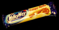 The good news for me is that it's really just a misleading package. This might not be so good for people who stumble across this bar and think that they might be able to eat a Milky Way Crisp Roll and lose weight. Maybe the wheat is just implying that there's some kind of cookie like substance in this bar.