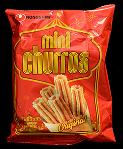 I’m not an expert in the field of churros, but I’m going to try and compare these as best I can to the regular large size churros you find in many fair grounds and theme parks. I think I can say that I’ve only eaten about 10 or 20 churros in my entire life. They’re not really a hugely popular food in the places I’ve lived. I’ve probably eaten most of my churros in Disney parks, several of them in Asia. That’s all to say that I’m not really sure what a “real” churro is supposed to be like, or what make a great churro. From what I know, the classic churro is a deep-fried tube of dough that’s crunchy on the outside and chewy in the middle. The most common flavour used in a churro is cinnamon and sugar, but that’s only from my own experience.