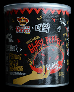 The package in this case did not mislead. Fortunately there is a brief second before the heat turns up where I most certainly taste the chip. I would best describe it as a plain Pringles like chip, kind of fake with a hint of potato. The heat is fairly intense, but I’ve had hotter. I managed a couple of chips before I decided to stop, but I stopped more out of discomfort than real intense pain. I would imagine that someone who’s really into super hot foods would be able to take this heat no problem.