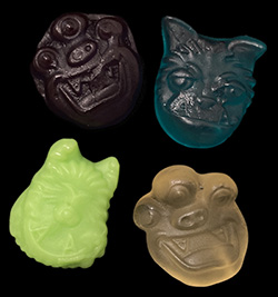 In a bowl these gummies would certainly look creepy and would fit into any Halloween party spread. Once people started eating them as well as looking closer at the designs they might be a little disappointed, but visually the colours are great.