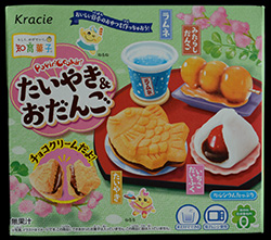 When I review these kits, I look at two factors. The first factor is how similar it is to the original treat. I’m very familiar with three of these treats from this kit, having sampled them in Japan on my various visits, the taiyaki (the fish shaped cake), the dango (the three balls covered in sauce) and the ramune soda (the blue pop). The strawberry thing is new to me, however it’s apparently supposed to be some kind of mochi stuffed with strawberry. I’ve actually had mochi a few times, so I have an idea where this is going.