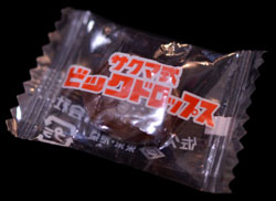 I'm not sure exactly where I got this candy. This isn't the first time this has happened, but it is the first time that I haven't remembered where I got such a mysterious candy. All I know about this candy is that I got it in Japan, somewhere, but I'm not sure if it came after a meal, or if someone gave it to me (this happens more than you might expect). Most people would probably do the sensible thing when you find a candy like this, and throw it away, but not me. I'm even more interested in eating it because I'm not sure at all what I'm getting myself into.