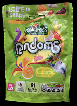 It’s weird to have a candy where the entire theme is “random”. Gummies might be one of the few candies that could pull off this theme, and Rowndtree’s did a decent job at it. The shape and flavours were varied, and the textures were a little bit too. The problem is in the end you’re still just eating a bag of gummy candies. Maybe if they had of included some non-gummy candy, or even some non-gummy textures it could have been even more random.
