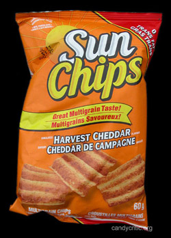 I went with the cheese flavoured Sun Chips because... well because... I guess I just like cheese. Flavour wise these chips really work well because the multigrain flavour of the chips really compliments the cheese flavour. Cheese on potato chips can sometimes be overpowering, but the multigrain chip is more like a cracker and can really handle the full-on cheese assault. It also helps that they don't over due the cheese stuff either. It's a good balance with a good style of chip.