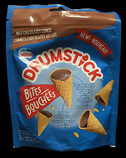 When I think of Drumsticks (not the musical kind or the kind from a chicken), I think ice cream. The second thought I have is “cone”. It’s not always true, but often when a candy company tries to expand into another direction, they often forget what makes their treat great. In other words they focus on the parts of their treat that may not be the best. In this case it’s the ice cream treat that’s eliminated the ice cream and focused on the chocolate.