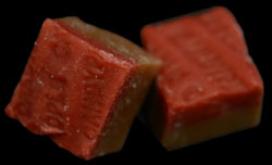 I have to admit I completely did not understand this candy when I tasted it. This is not to say that I liked it a whole lot after I understood it, but at the very least I can say that it's more successful now that I understand it. When I first tasted this fudge, I assumed that it was supposed to be raspberry flavoured, and as a raspberry fudge goes, it's a total failure. Then I read the word "licorice" on the bin where I bought it (I took a picture of the bin when I bought it) and I realized that it was supposed to be raspberry and licorice flavoured instead.