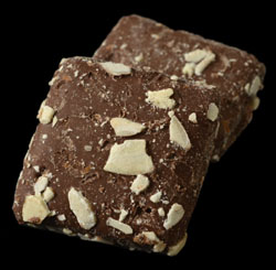 The next strongest flavour is the chocolate. The chocolate isn't bad, but something with a bit more cocoa would have been a lot better. It just didn't seem chocolaty enough, particularly to compete with the powerful Buttercrunch center. The most disappointing part of this candy is the almonds, or almost complete lack of them. You can see them on the top of this treat, but they ad nothing to the flavour or texture. You could remove the almonds completely and it would change almost nothing. The lack of almonds is a shame since I think more almond might have balanced out the overpowering Buttercrunch center.