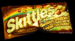When I was a kid Skittles didn't mess around. They where fruity, chewy and you only had one kind, the multi fruit flavours found in the red package. To branch off into chocolate, this some kind of crazy world we live in. Wait a minute, I guess we live in a world of constant candy variations, so why can't Skittles do it as well?