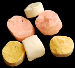 While these aren't the greatest candies I've ever eaten, they're OK. A real Scottish person tells me that these are in fact the signature candy of Edinburgh, but I have no historical fact to back it up. I'd say if you're visiting the Edinburgh, it might be nice to pick up a bag, but don't get too much because the flavour doesn't really hold up after the second tasting.