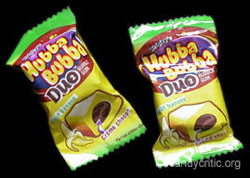 My arch enemy, banana flavoured bubble gum. Banana flavoured gum from the 1980s is the whole reason I don't like banana flavoured treats. So why am I reviewing this, why would I eat what could be the worst treat, the treat that wakes me up in the middle of the night in a sweat, why would I do it? Well that's simple, I forgive you banana-flavoured bubble gum. I'm a big enough man that I'm willing to try it again. I figure with a little chocolate it could be great, after all I love chocolate chips in my banana bread, so this could all be good.