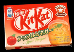 I think there might be a slight problem here. I'm sure like myself, you have thought that the idea of eating a Kit Kat bar that was flavoured with "Apple Vinegar" might be a great adventure, or at the very least a horrible tragedy you could read about on this site. The problem is I think the use of the word "Vinegar" on this package may have been incorrect. I say this for two reasons. First of all, for the most part Apple Vinegar is used as a cooking agent and very rarely used just to flavour. Secondly these tastes more like apple cider than apple vinegar. So, it leads me to think that somewhere someone might have either made a mistake, or a failed marketing move.