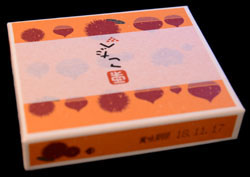 The simplest way to describe these is to say that they taste and feel like you’re eating uncooked, sweet chestnut ravioli. Maybe it’s better to say that they taste like what you’d want uncooked, sweet chestnut ravioli to taste like. In this box are 5 small dumplings filled with a small lump of chestnut paste. The dumplings are made of mochi, a dough that’s made of pounded sticky rice. Mochi is most commonly found in ball form, often filled with different pastes. It’s a super stretchy dough and it has a slight rice flavour.