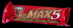 The reason I chose to review the Max 5 chocolate bar was because of a commercial. Yes, the Candy Critic can be influenced by the media to try a new treat just because the commercial is cool. The advertisement in question was full of playful images of candy and fun word plays, including the one that caught my attention: "What's better than four... Max 5." As much as advertising may seduce my weak mind, I think the other reason this treat intrigued me was the idea that a new treat had come along. After eating and reviewing the 10th variety of Kit Kat or Aero, something brand new is a very refreshing idea.