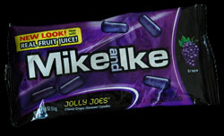 I’m not really used to Mike and Ikes only offering one flavour in a package. Most of the time Mike and Ikes come in packages featuring at least two flavours, and sometimes as many as 5, but not with these. The only flavour you get in this package is grape, purple grape, plain and simple. I'll tell you right off the bat that I did enjoy these Jolly Joes, but I do have two questions/problems with this treat.