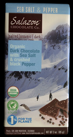 The logic of this bar is a little disconnected, but there is a logic. As any candy fanatic knows, chocolate and salt go well together. Any cook knows that salt and pepper go hand in hand as well. So, the logic of this bar is if you have a common connecting ingredient, everything should work out perfectly. While on paper this kind of thinking is true, in reality it rarely works.