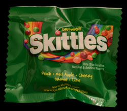 I was a little worried about trying these new(?) Skittles. I find myself being disappointed with candies themed to orchards most of the time, it's likely due to my dislike of most apple flavoured candies. Without getting into too much detail right off the bat, I was not disappointed with these at all. In fact, I found myself searching out a second bag of them to just enjoy later on, without having to write a review. I do have one problem with the flavour choice, but it's a minor one.