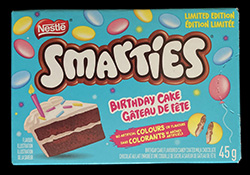 So I don’t really agree with the basic concept of this treat because I believe you can have whatever flavour of cake you want on your birthday, but there’s also something else wrong here. These aren’t very vanilla (or cake) flavoured, and there are no sprinkles to be found. There might be a slight hint of vanilla, but it’s so subtle that the chocolate totally overshadowed it. The good news is that the chocolate is pretty tasty, so it’s not a bad candy by any stretch. It’s just nothing particularly unique, it’s just a box of Smarties (the Canadian/UK version).